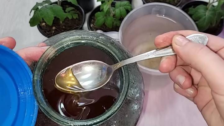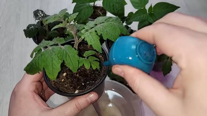 Смешайте эти два компонента в 1 л воды. Полученным раствором полейте рассаду томатов и перцев. Удобно поливать спринцовкой. Будьте внимательны: не заливайте растение! Во всём необходимо соблюдать меру.