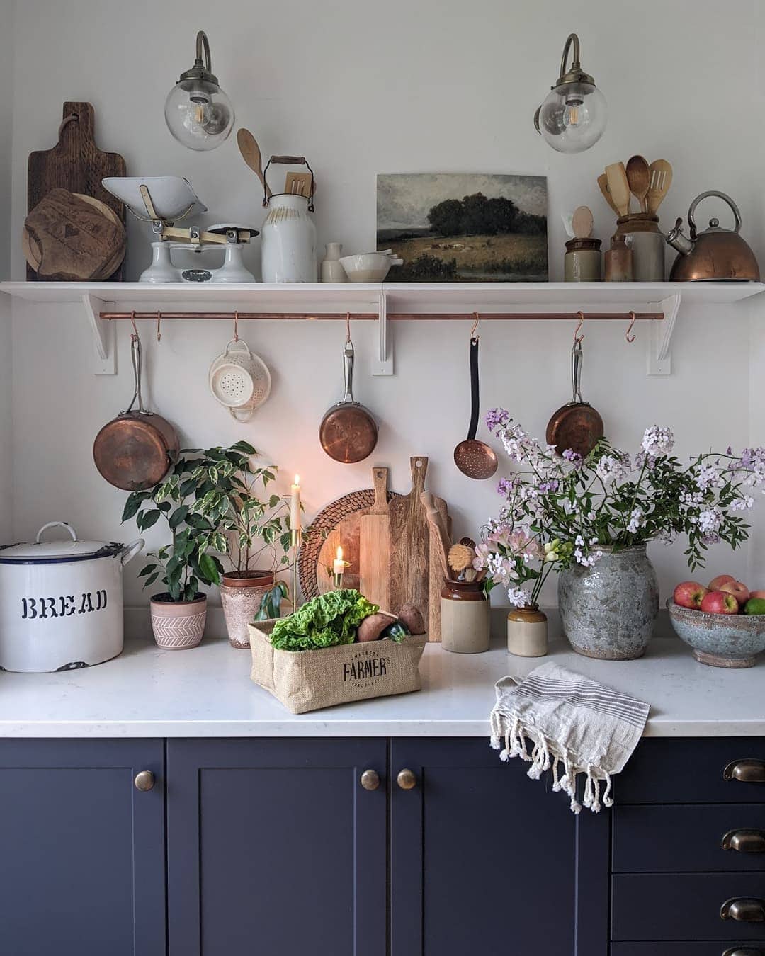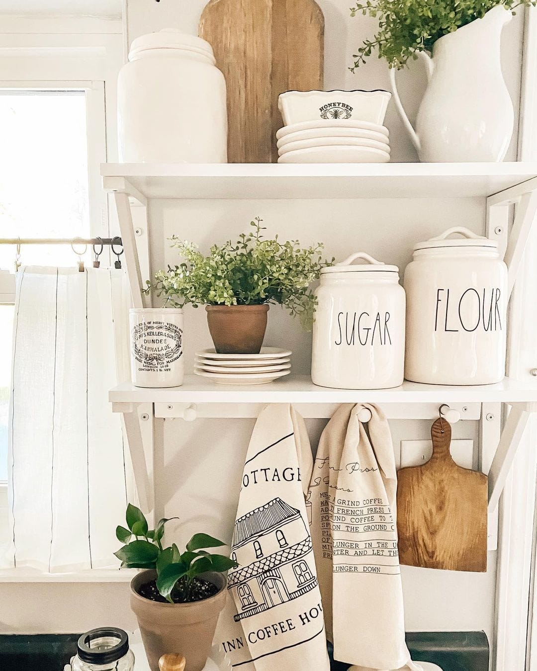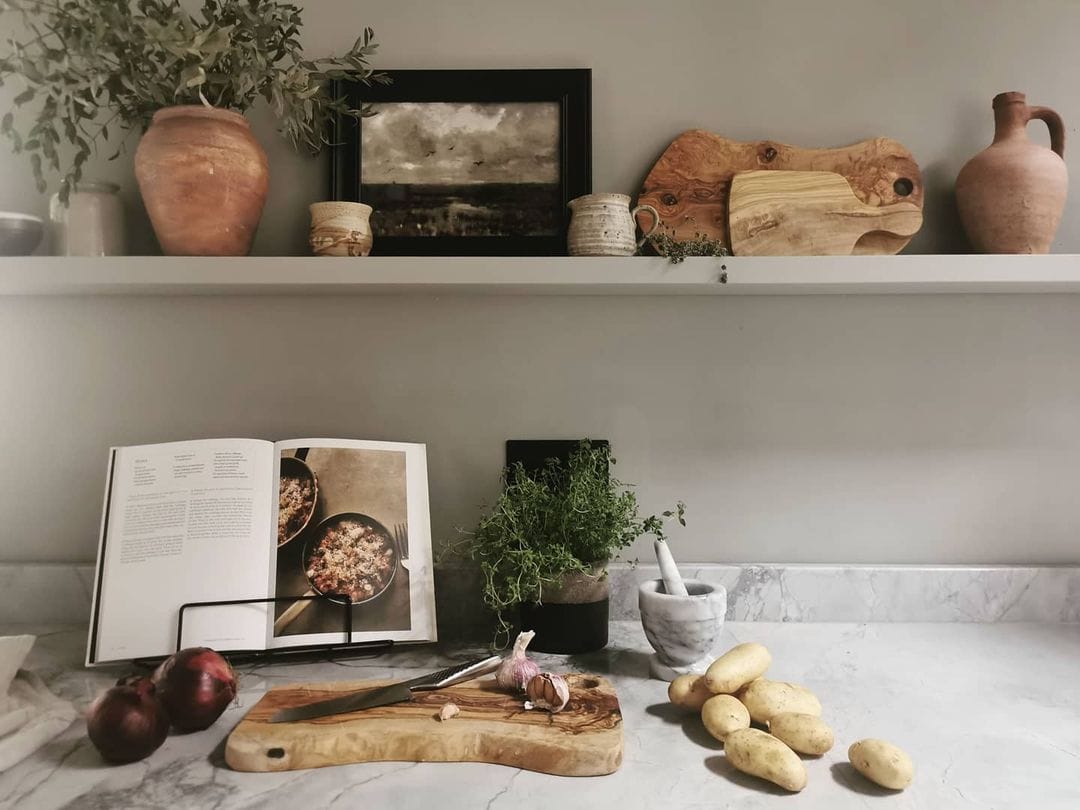 При оформлении современных кухонь в разных стилях дизайнеры интерьеров все чаще отказываются от объемных навесных шкафов, которые загромождают пространство, и заменяют их легкими, элегантными, но при этом вместительными и функциональными открытыми полками. Использование такого приема помогает сделать кухню более уютной, светлой и просторной, что особенно актуально для небольших площадей. Если грамотно подойти к организации пространства на кухне, то на открытых полках легко удастся разместить не только всю посуду и кухонную утварь, но и элементы декора и растения, которые добавят «изюминку» в интерьер.