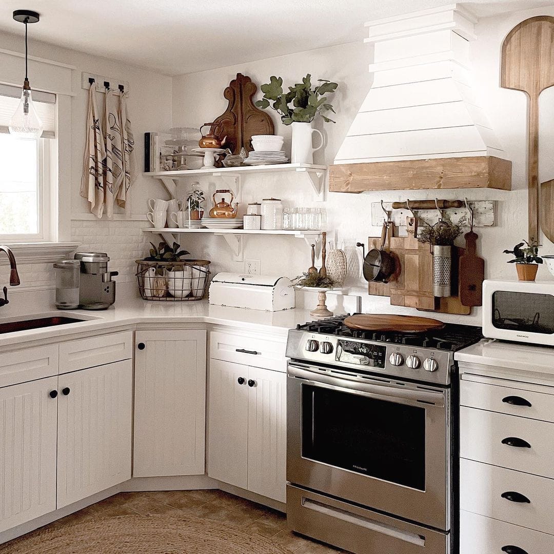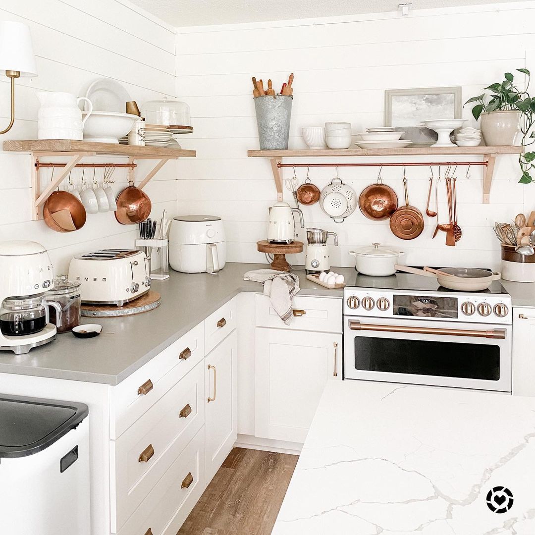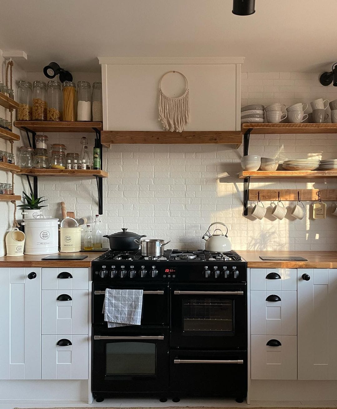 Современные решения для небольших кухонь: открытые полки для тех, кто никак не решится отказаться от навесных шкафов