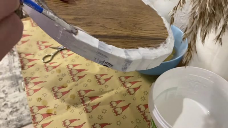 Переходим к изготовлению крышки. Чтобы сформировать бортики крышки, ко второму кругу приклейте полосы картона шириной 2 см. Выровняйте бортики, обклеив их кусочками бумаги, заранее смоченными в воде.