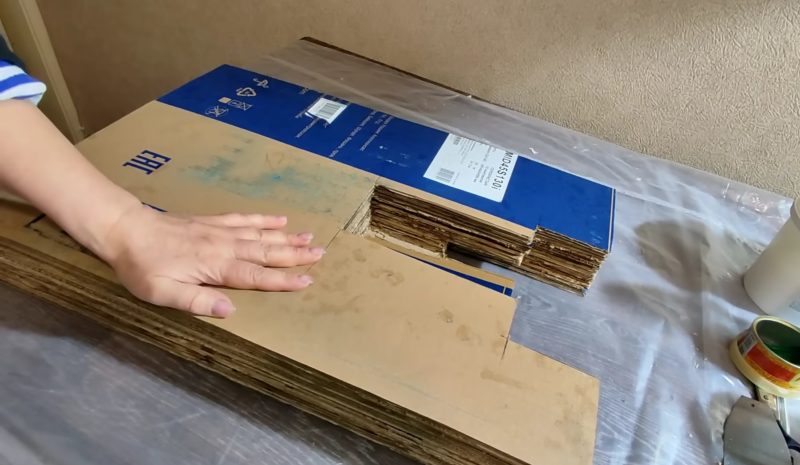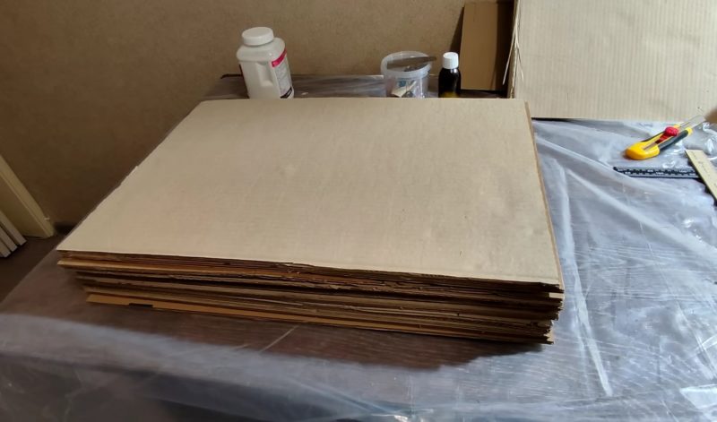 Склейте листы между собой. После склеивания листов высота конструкции может немного уменьшится, при необходимости добавьте еще 1-2 листа картона.
