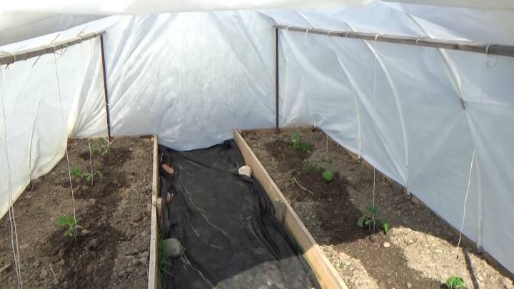 Дорожку между грядками можно закрыть, например, садовым геотекстилем, а сверху присыпать песком, чтобы не было сорняков. За такой теплицей и растениями в ней ухаживать одно удовольствие! А главное, её реально построить быстро, просто, из доступных материалов и женскими руками.
