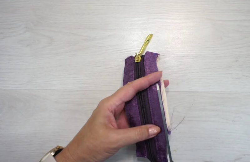 Конец молнии зафиксируйте специальным декоративным наконечником. Аккуратно подрежьте срезы получившейся детали.
