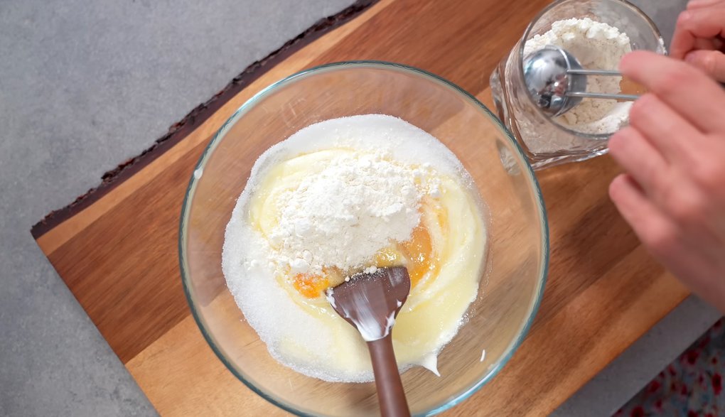 Переложите тесто на пищевую пленку или пергамент и оставьте в холодильнике на 30 минут. Заливка для пирога готовится очень просто. Все, что нужно сделать — просто смешать все ингредиенты до получения однородной массы.
