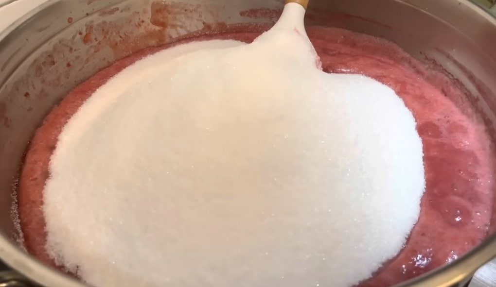 Добавьте к уваренному пюре сахар и хорошо перемешайте до полного растворения сахара.