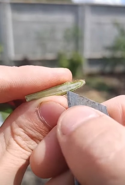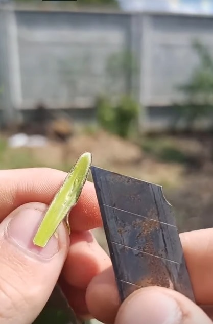 Срежьте почку с молодой веточки яблони вместе с листочком. Для этого необходимо сделать аккуратный косой срез, используя стерильный инструмент.