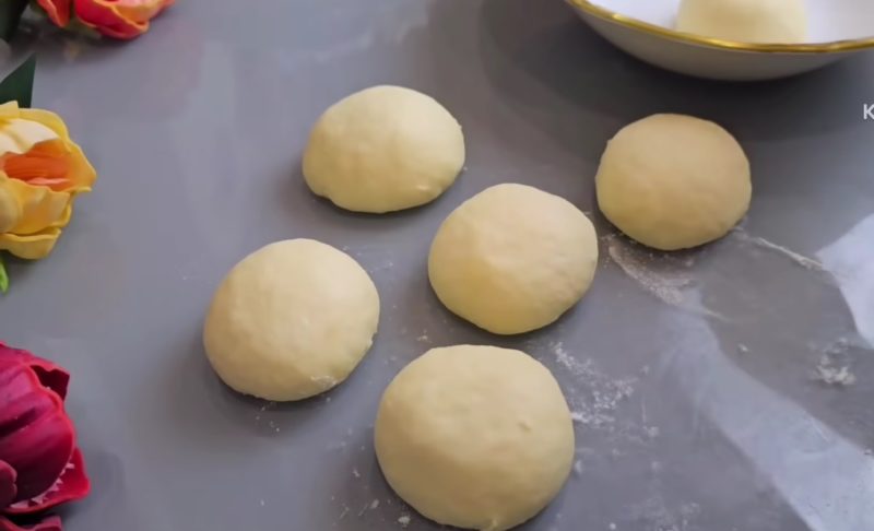 Разделите тесто на 6-7 равных частей, из каждой сформируйте шарик.