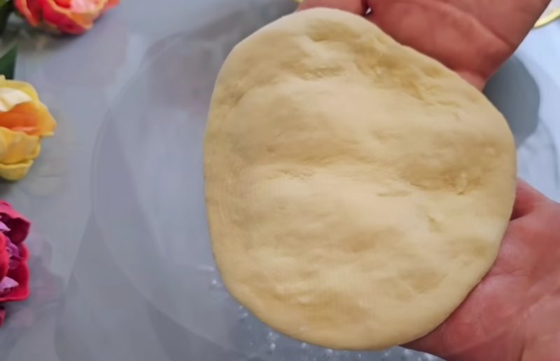 Растяните каждый шарик в лепешку толщиной примерно 1 см.