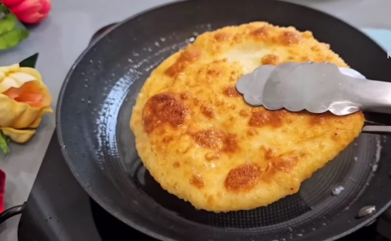 Обжаривайте лепешку на раскаленном растительном масле с двух сторон до золотистой корочки.