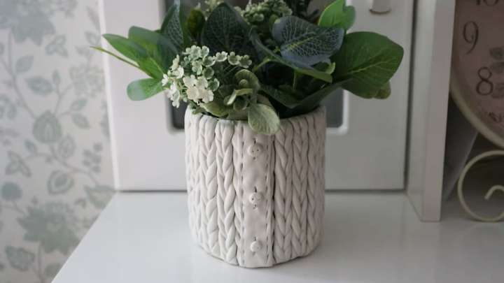 Вот такое чудесное декоративное кашпо получается! Смотрится очень стильно, и даже не скажешь, что под декором находится консервная банка.