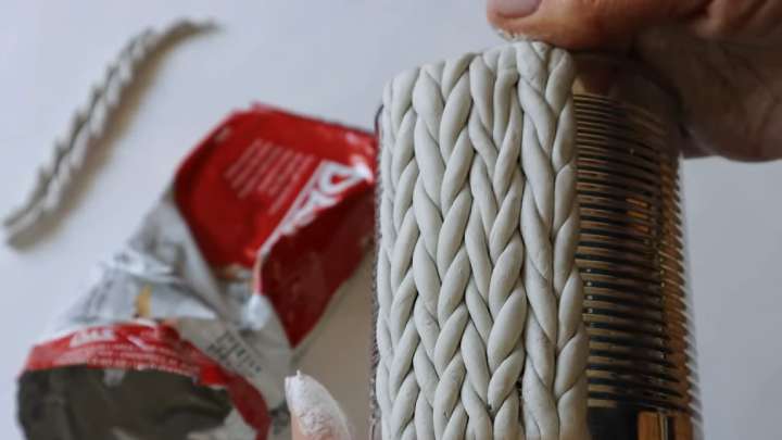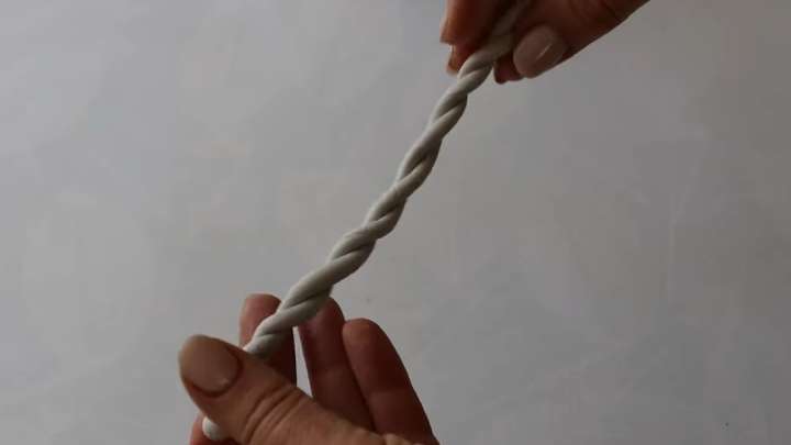 Из пасты для моделирования нарежьте и скатайте жгуты, которые сложите пополам и перекрутите между собой.