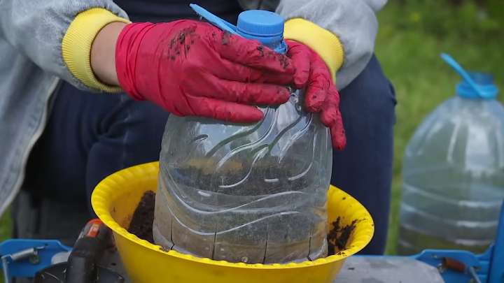 Полейте и закройте черенок. Уберите в теневую часть участка. Оставьте в таком виде до конца лета. Открывать и дополнительно поливать не нужно: на стенках будет образовываться конденсат, и влаги будет достаточно. В конце лета-начале осени вы сможете увидеть в бутылке результат — укоренившийся черенок!
