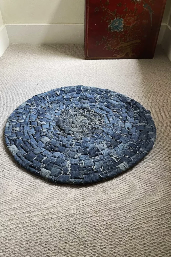 Уникальный способ сделать прикроватный коврик из джинсов простым способом