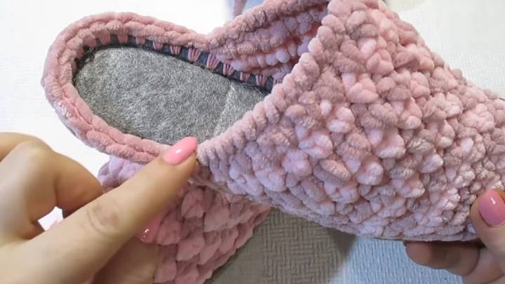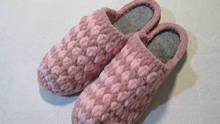 Уютные тапочки на войлочной стельке: из плюшевой пряжи вязаные крючком