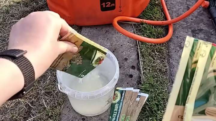 Нужно выбрать в садовом магазине любую подкормку, в состав которой входит гиббереллиновая кислота («Цветень», «Завязь» и т. д.). Она увеличивает количество завязей на растениях. Возьмите из расчёта 5 гр. на 3 л воды. Сюда же также нужно добавить монокалий фосфат из расчёта 2 гр. на 1 л воды.