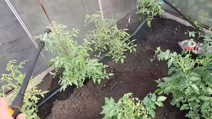 Перелейте в опрыскиватель и обрабатывайте все растения томатов на участке (1 раз в 1-2 недели). На 30-40 кустов томатов хватит и 3 л подкормки. Подкормка недорогая, доступная, а главное — крайне эффективная для увеличения завязей!