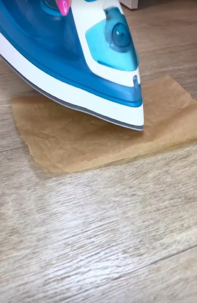 Все, что нужно сделать — положить на линолеум кусочек сложенной в 2 раза бумаги для выпечки и прогладить поврежденный участок горячим утюгом.