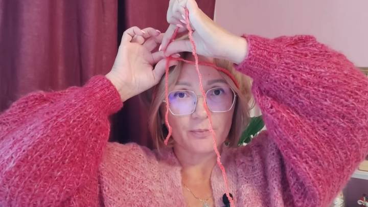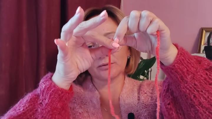 Зафиксируйте пальцами, где заканчивается 3-й круг. Снимите пряжу.