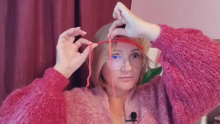 Обмотайте голову пряжей с учётом кончика, который не используется. Не натягивайте пряжу слишком сильно!